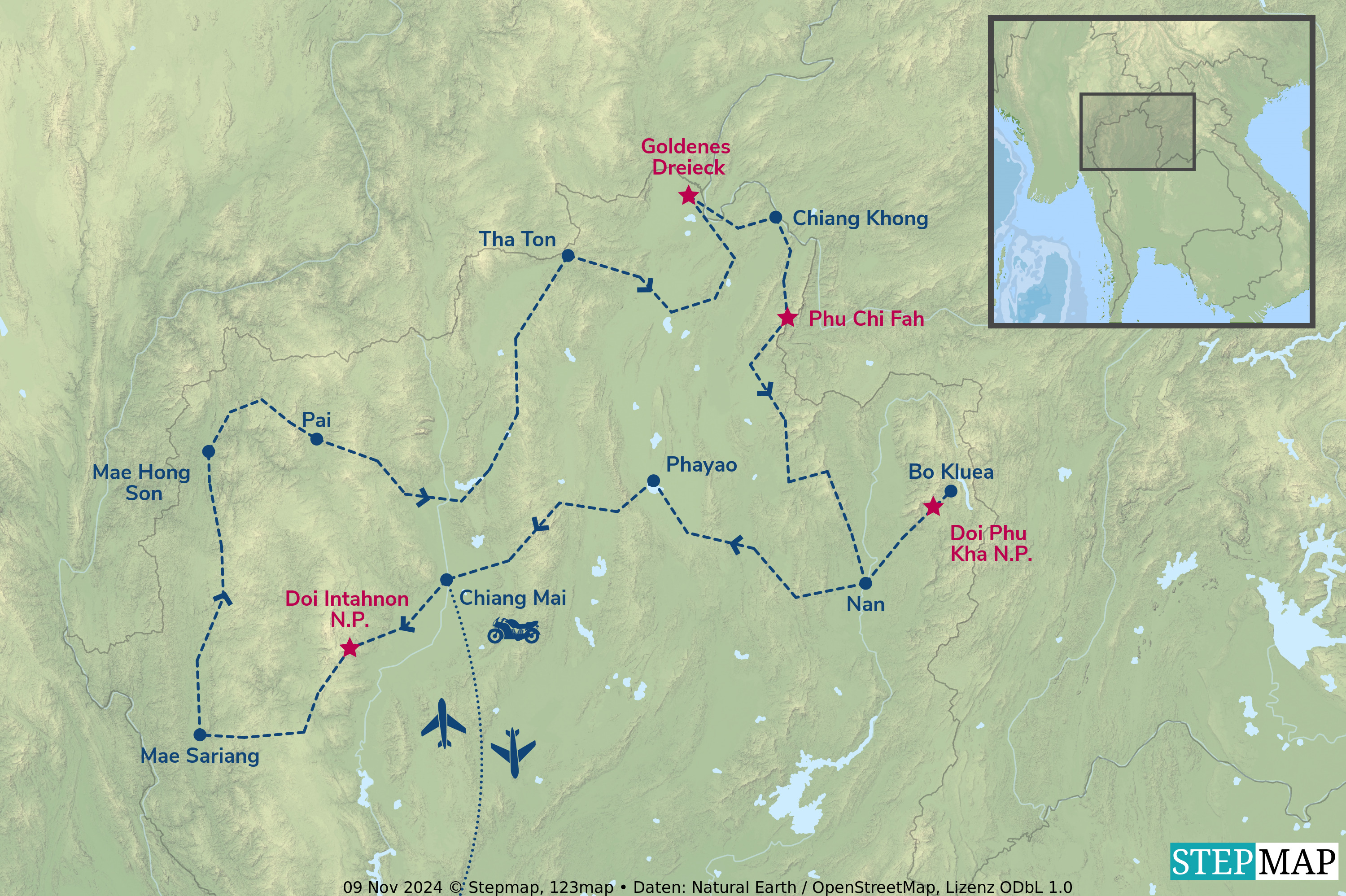 Unsere Motorradreise durch Thailand beginnt in Chiang Mai, Hauptstadt des alten Lanna Königreichs und führt uns auf der Samoeng-Runde weiter in Richtung Norden.