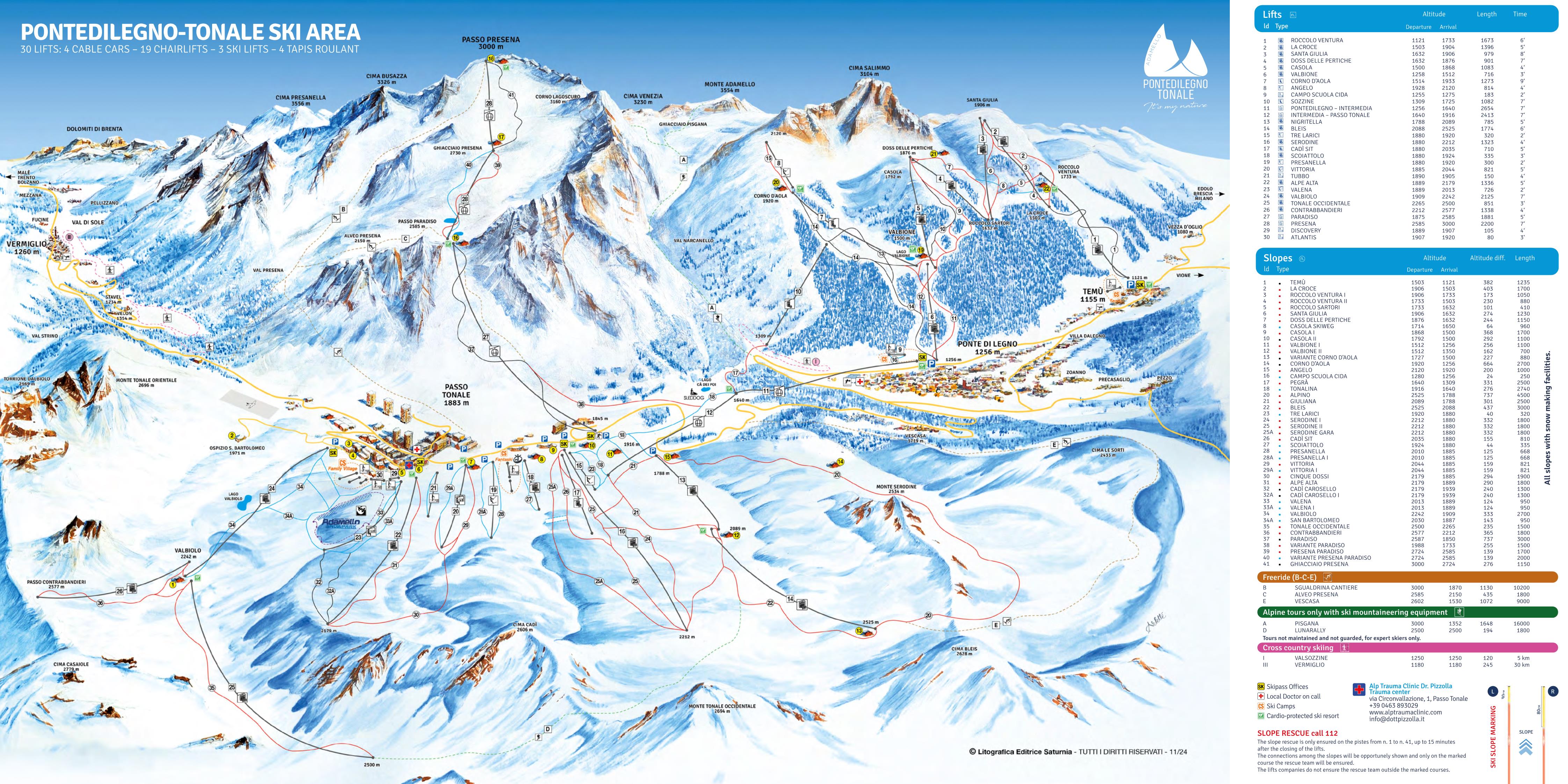 Die 41 abwechslungreichen Pisten bieten familienfreundliche Einsteigerhänge und anspruchsvolle Strecken bis hin zur spektakulären Gletscherabfahrt am Presena - eine der längsten Pisten Europas mit 11km Länge und 2.000m Höhenunterschied.